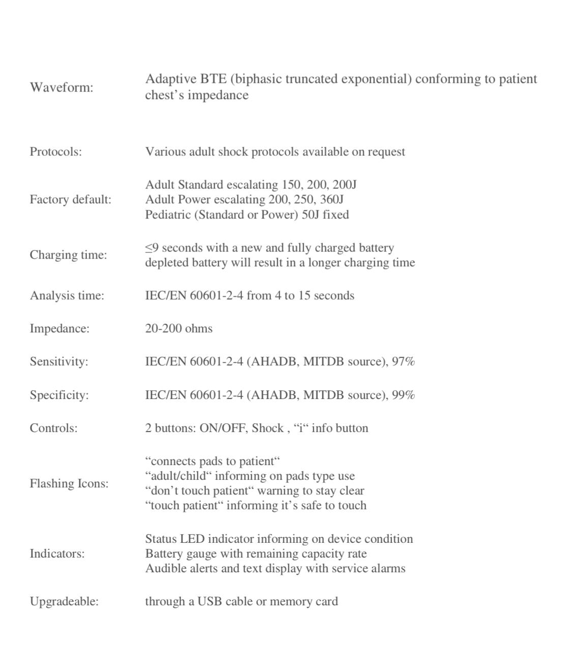 Specificity: IEC/EN 60601-2-4 (AHADB, MITDB source), 99%